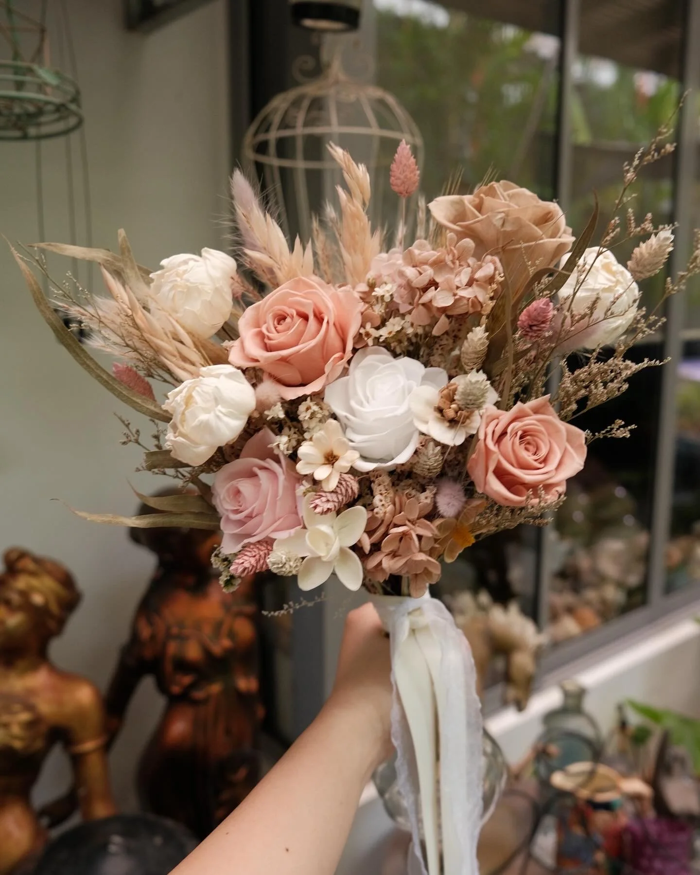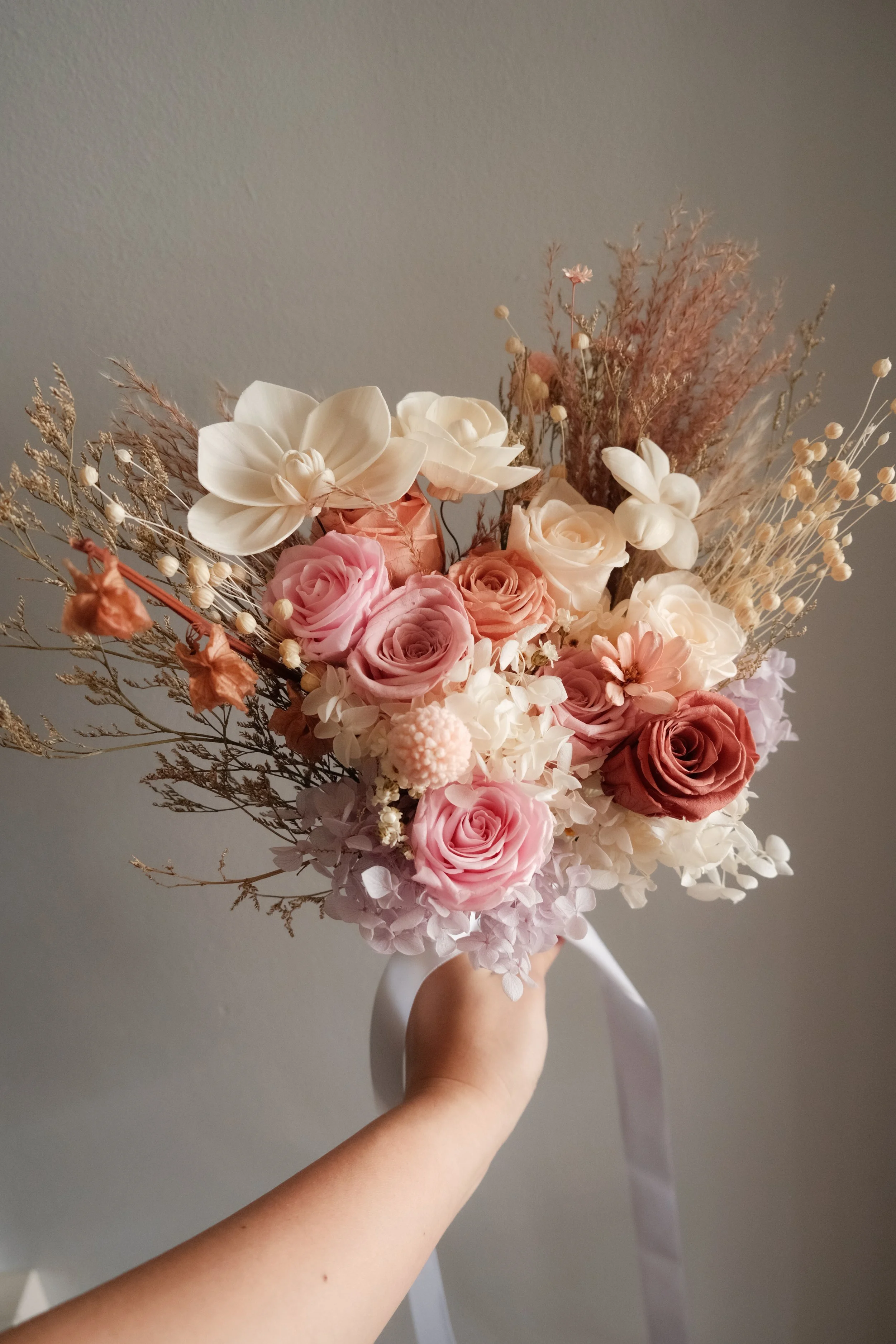 I came across Kat's preserved flower bouquets on Instagram and I was immediately intrigued! I absolutely loved how dainty they looked. She was so easy to communicate with and she knew exactly what I wanted for my bridal bouquet. I 100% recommend her to anyone out there looking for a beautiful bouquet for any occasion! Thanks for contributing to my special day, Kat. You are the best! :)
